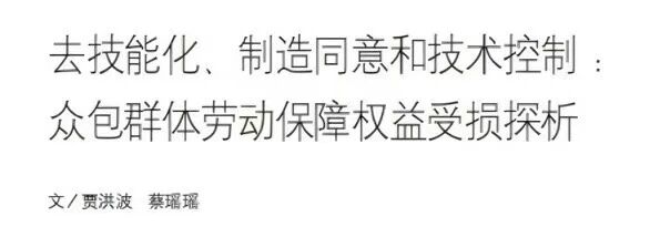 近日,北京航空航天大學人文社會科學學院(公共管理學院)賈洪波教授、博士研究生蔡瑤瑤發(fā)表《去技能化、制造同意和技術控制:眾包群體勞動保障權益受損探析》一文,被《人大復印報刊資料·勞動經(jīng)濟與勞動關系》so米體育-NBAso米直播第9期全文轉載